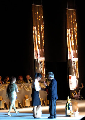 Gunilla i snöret matchade henne perfekt i smakfull klädsel med en helt underbar rosa bolero. De var ett.