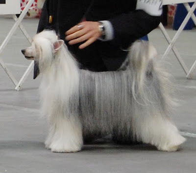 We had been to a Crested Speciality show the day before with 47 entries and the impression after two shows is that American Cresteds have all sizes, short backs, thin bone and bodies. Only a few had good movements. P/P coats were done up to extreme, strangly enough sunlamps had not been used and only dogs from Texas and California had good colours. Temperaments were overall good.